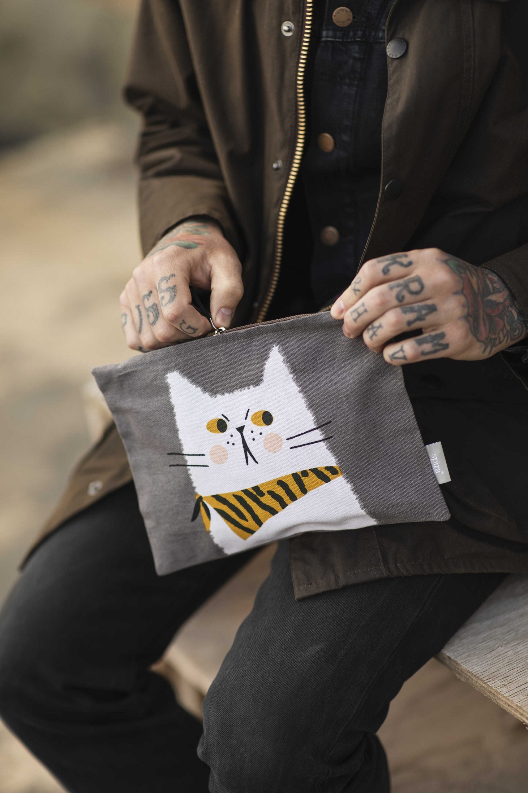 Måns is a little cloud of sourness. Just pat him if you like adventure. He stares at you with a look that makes cream turn sour if the food is delayed and leaves fur on everything you love. Måns toiletry bag 25×19 cm. 100% cotton with a lining in dirt-repellent material. Hand-printed. 40° color wash. The product is certified according to STANDARD 100 by OEKO-TEX®. The certification guarantees that the product is tested and free of substances that can be harmful to health and the environment.